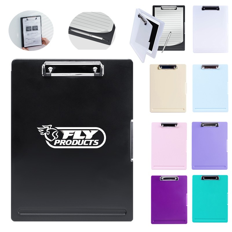 The clipboard is made of durable PP materials and with a robust construction (the lid won't pop open even when pressure is applied), a smooth writing area and great storage spaces, it makes work easier when you need to take papers and notes at the same time.Compared to other ordinary clipboards that can write alone, our professional clipboard cover comes with 2 pockets for storing paper and pen, including a low profile metal clip with ergonomic finger grips, a hanging holes on the back, very convenient for your busy paperwork.With a pocket for storing the pen, very handy if you always lose pens.